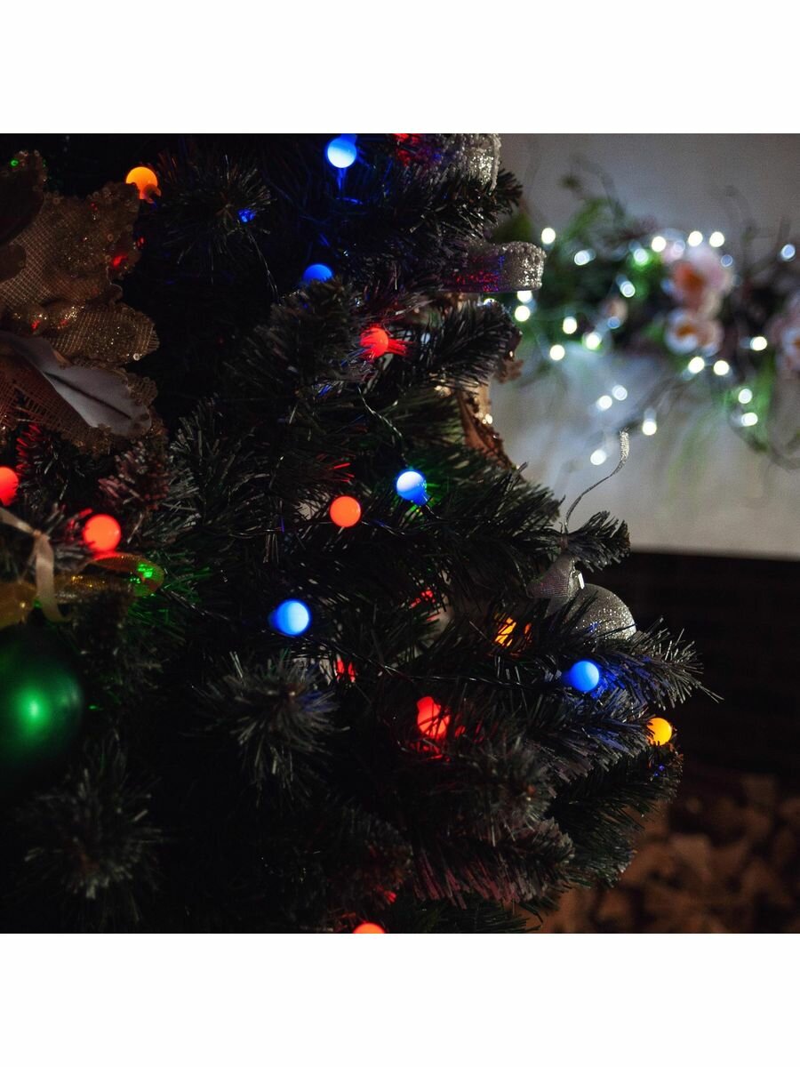 Гирлянда нить шарики на елку, стену, 5м, разноцветная, новогодняя, светодиодная