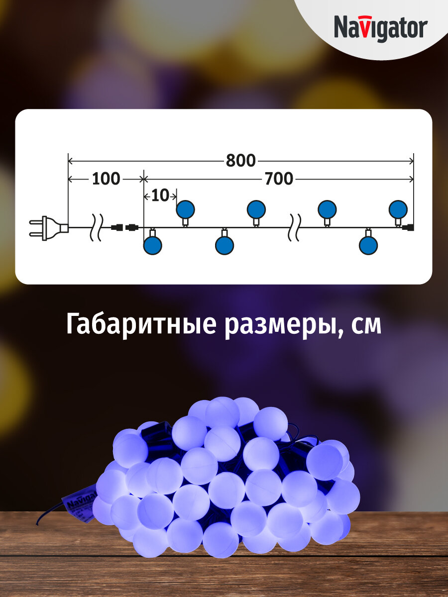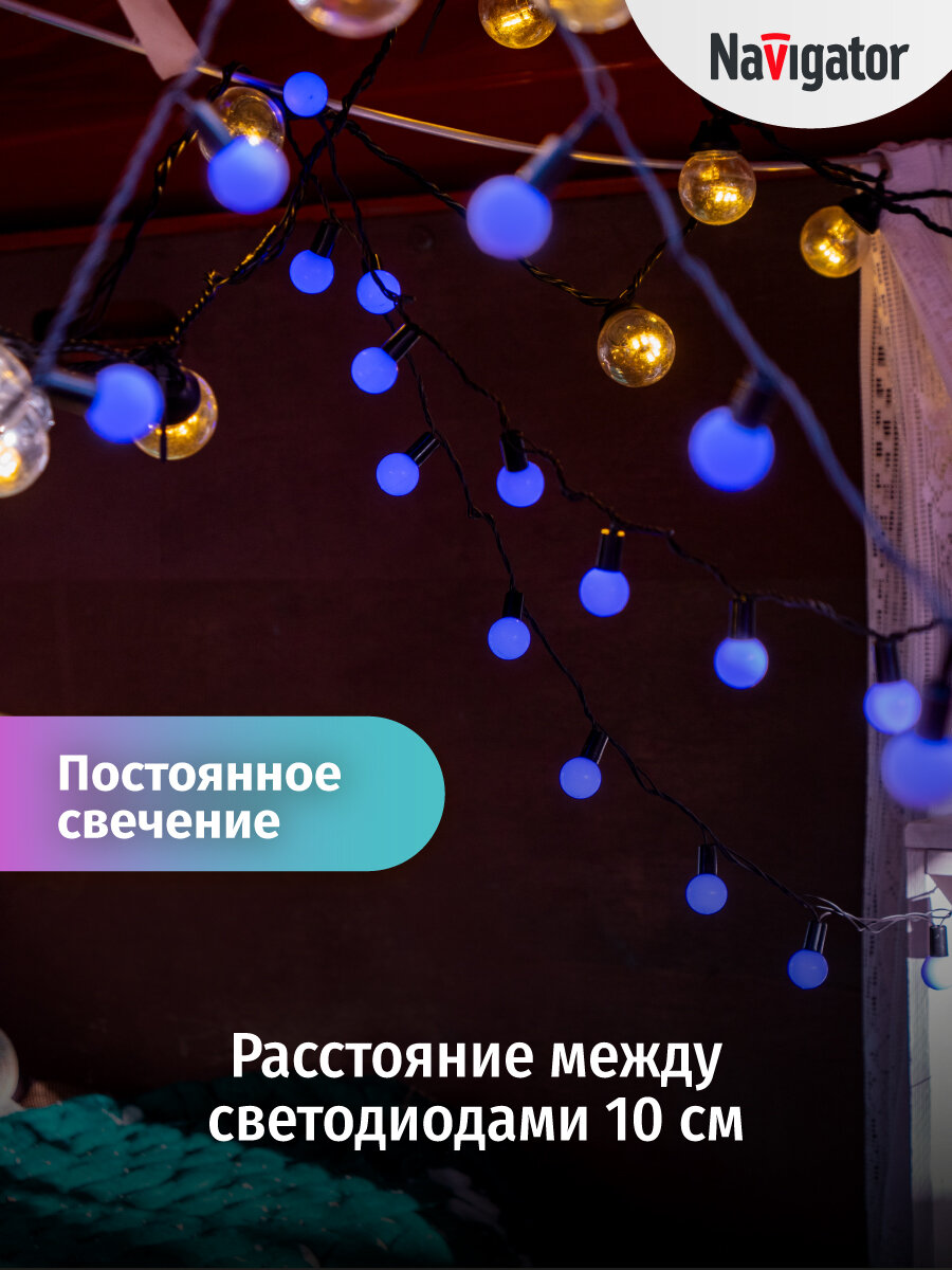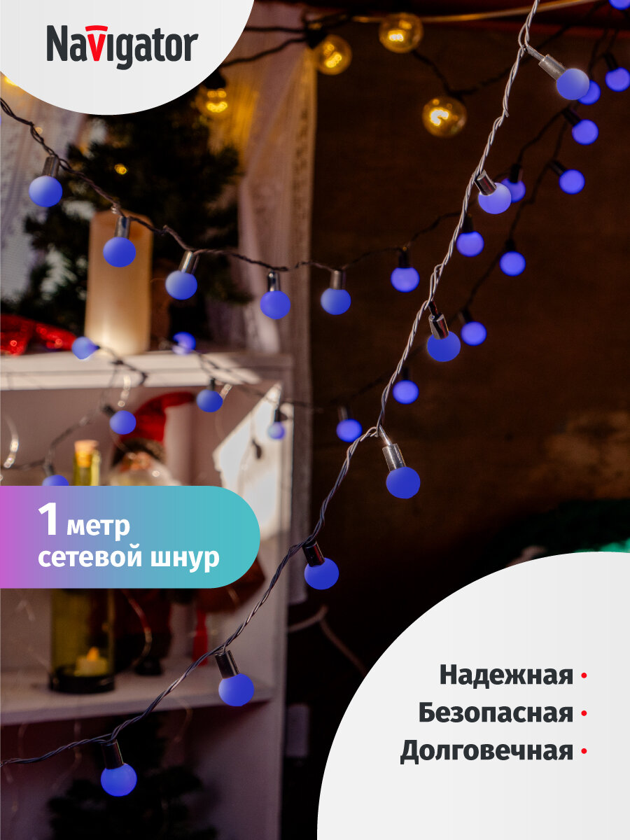 Купить Гирлянда светодиодная Navigator 61 839 Шарики, 8 м, синий свет, IP44