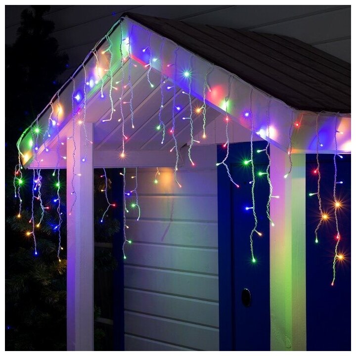 Гирлянда «Бахрома» 4 × 0.6 м, IP44, белая нить, 180 LED, свечение мульти, 8 режимов, 220 В