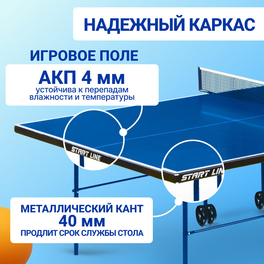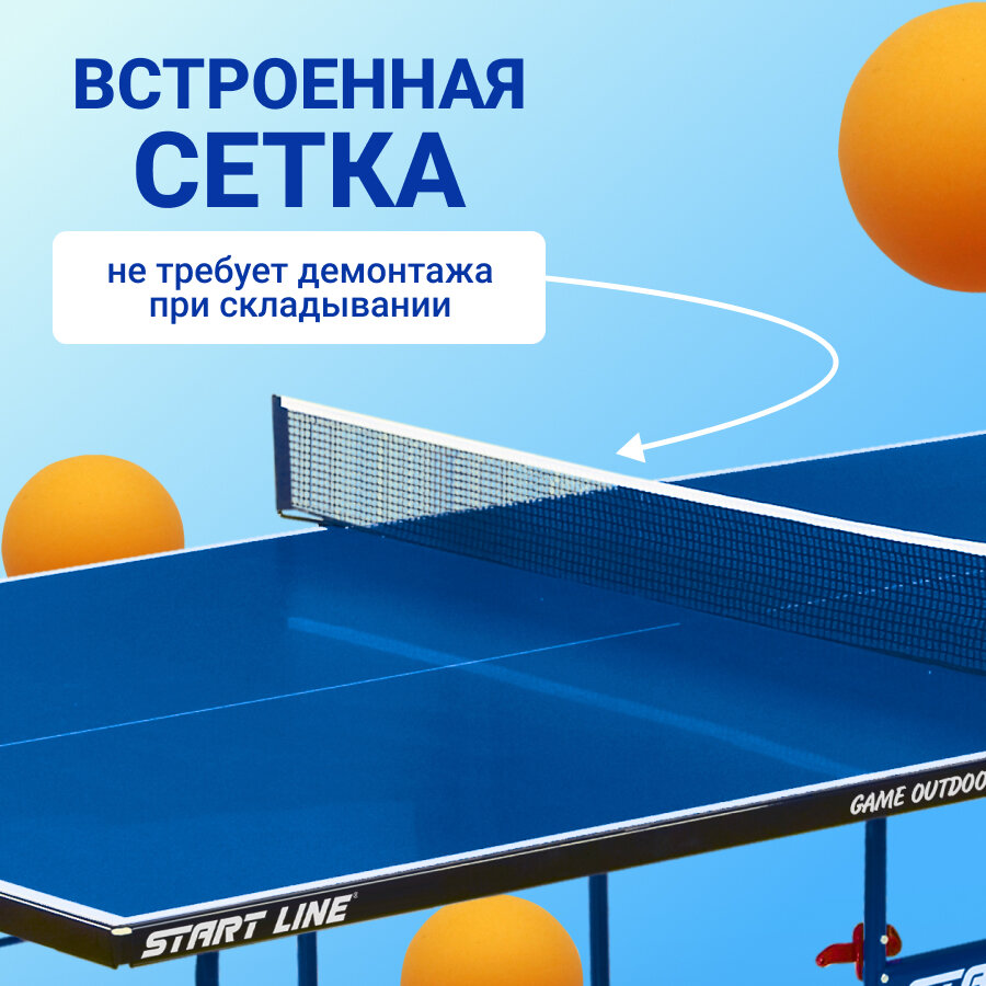 Теннисный стол Start Line Game Outdoor всепогодный для улицы (встроенная сетка, цвет синий)
