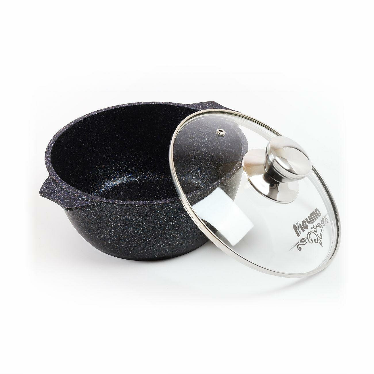 Кастрюля Мечта Гранит Black литая с антипригарным покрытием, со стеклянной крышкой, 6л, гранит black