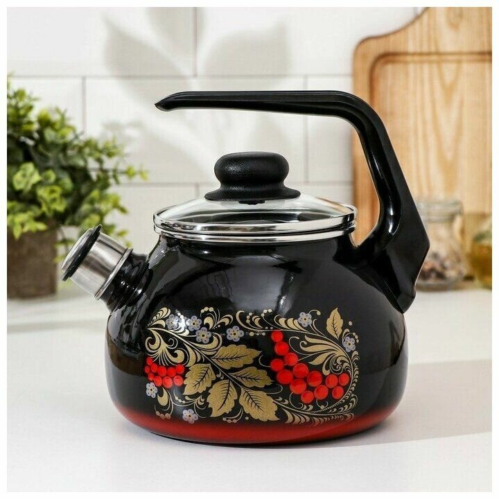 Чайник эмалированный со свистком "Рябина", 2 л, индукция, цвет чёрный