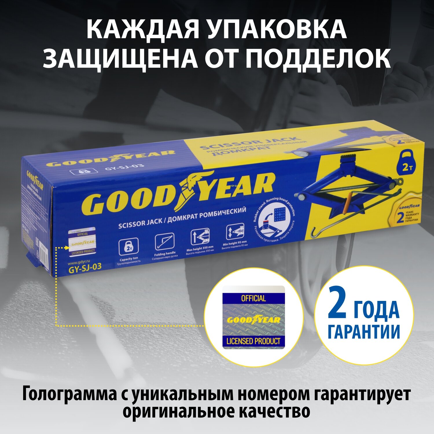Универсальный ромбический домкрат Goodyear GY-SJ-03 2 т, 100-410 мм, со съемной ручкой GY000912 .