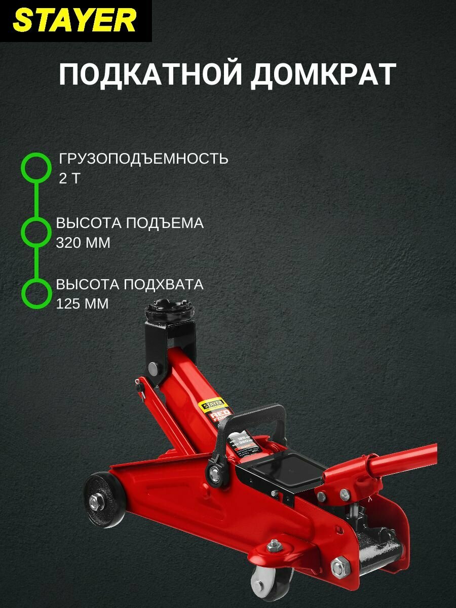 STAYER R-22 2т 125-320мм подкатной домкрат для легковых а/м, RED FORCE(43152-2)