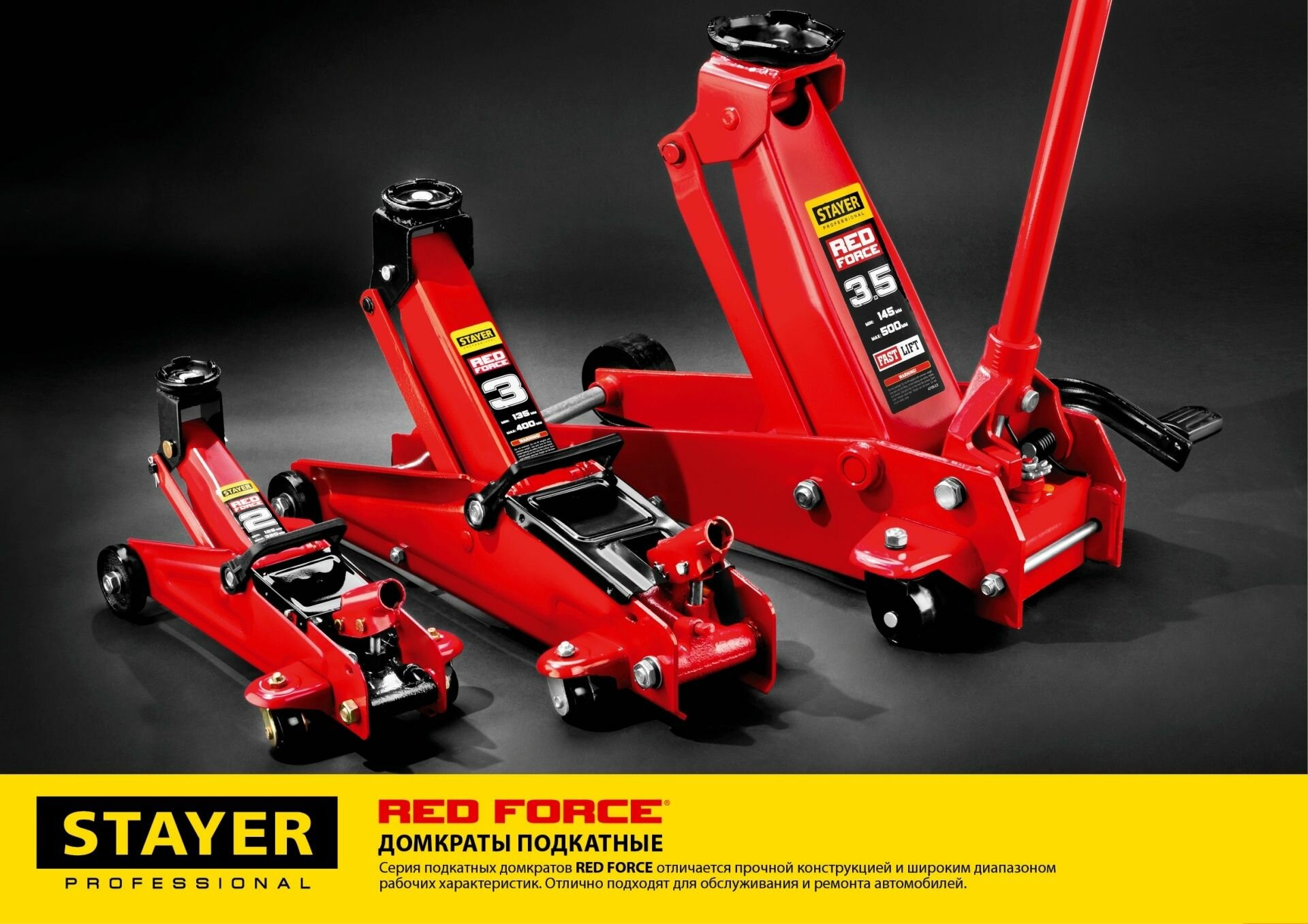 Купить STAYER R-22 RED FORCE, 2 т, 125 - 320 мм, подкатной домкрат для легковых а/м, Professional (43152-2)