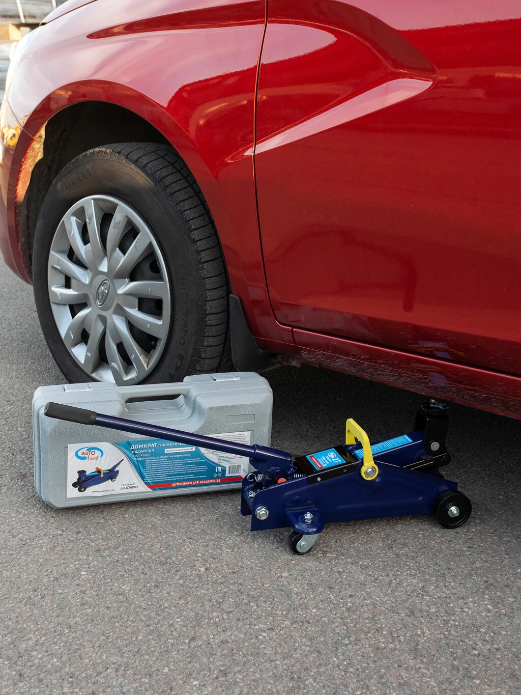 Гидравлический подкатной домкрат 2т +кейс /синий/ AUTOVIRAZH AV-076002