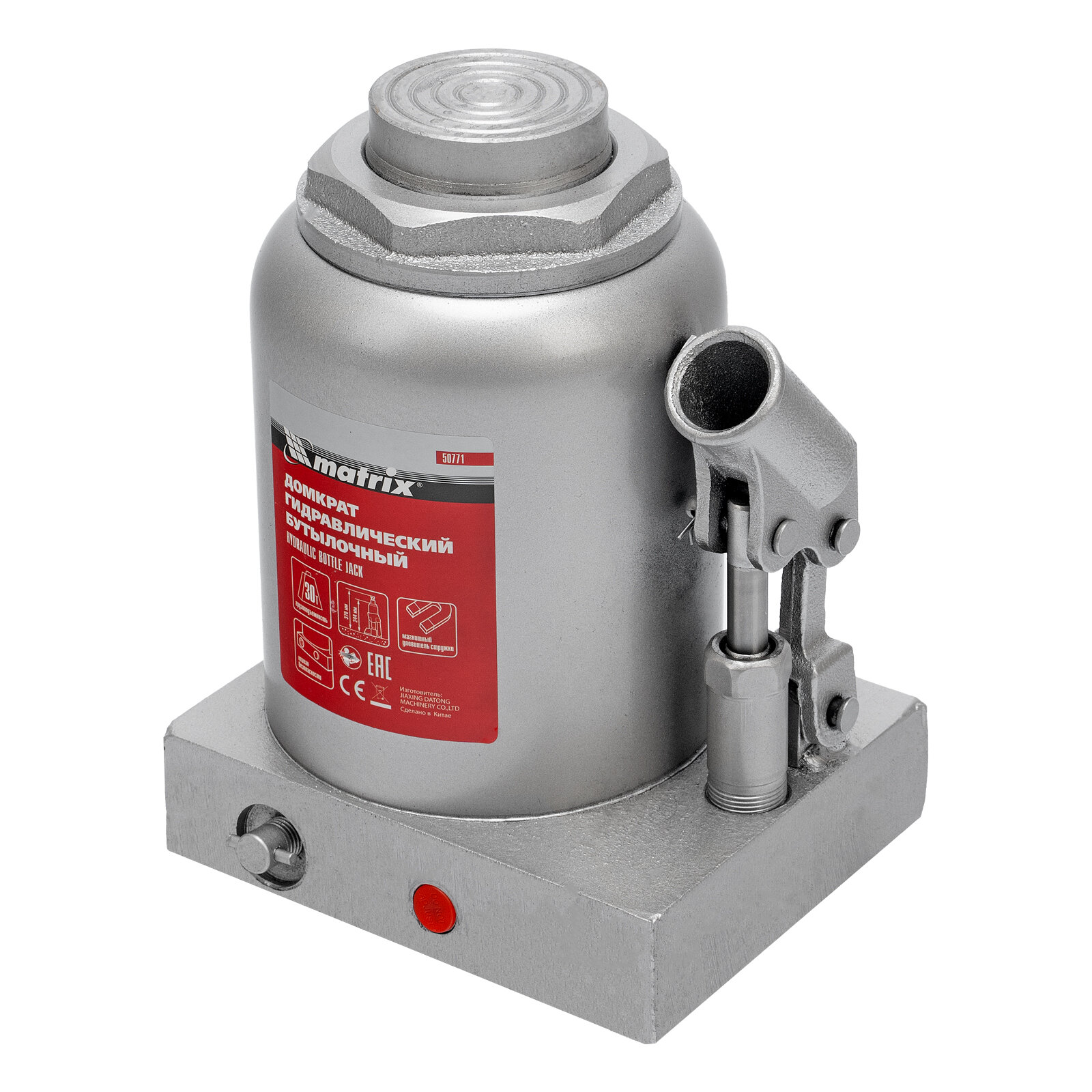 Домкрат гидравлический бутылочный MATRIX 50771, 30 т, h подъема 244–370 мм