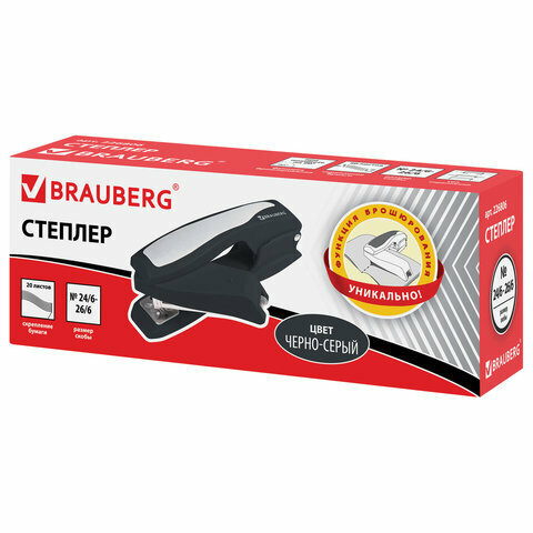 Купить Степлер №24/6, 26/6 BRAUBERG «B-360», до 20 листов, С функцией брошюрования, черно-серый, 226806