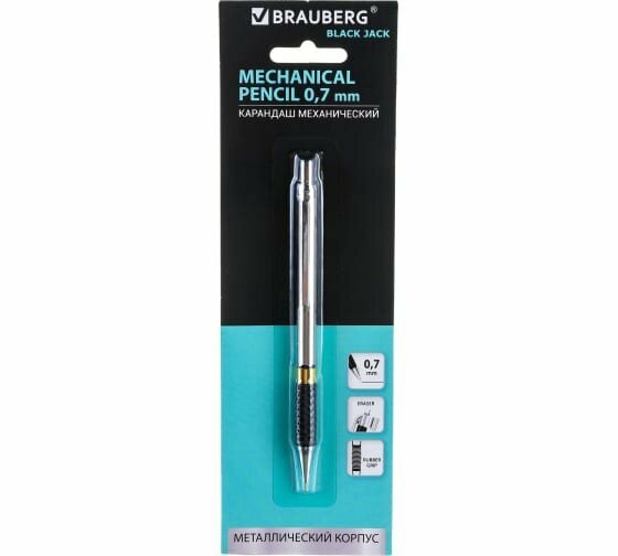 Купить BRAUBERG Карандаш механический "Black Jack", металлический корпус, резиновый грип, ластик, 0,7 мм, 180467