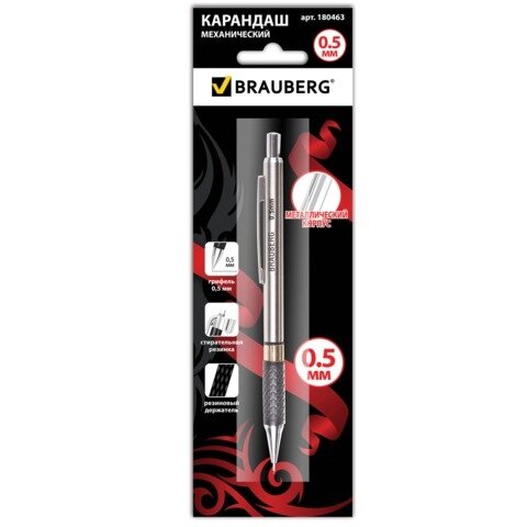 Купить Карандаш механический 0,5 мм, BRAUBERG "Black Jack", металлический корпус, ластик, резиновый грип, 180463 (цена за 1 ед.товара)