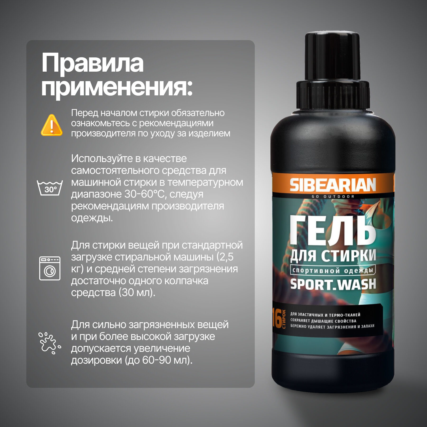 Купить Гель для стирки спортивной одежды, мембраны с DWR, технологичных тканей SIBEARIAN SPORT WASH 500 мл