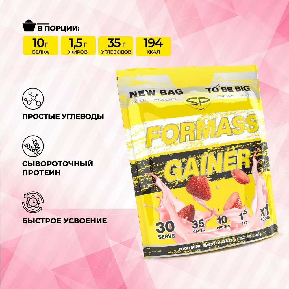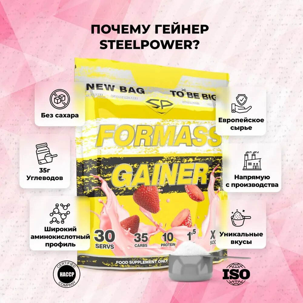 Купить Гейнер STEELPOWER ForMass Gainer, 1500 г, клубника со сливками