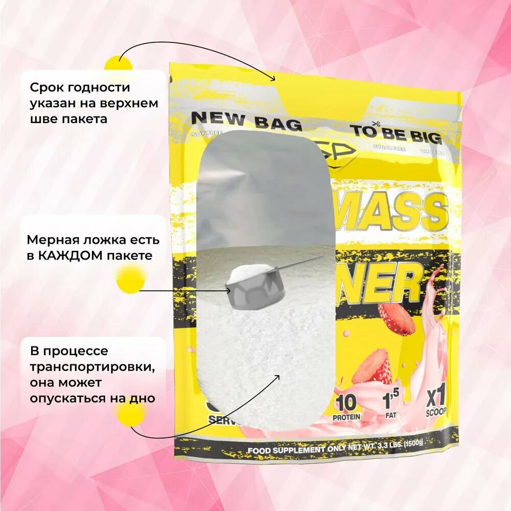 STEEL POWER For Mass Gainer 1,5 кг (Малый пакет) (Клубника)