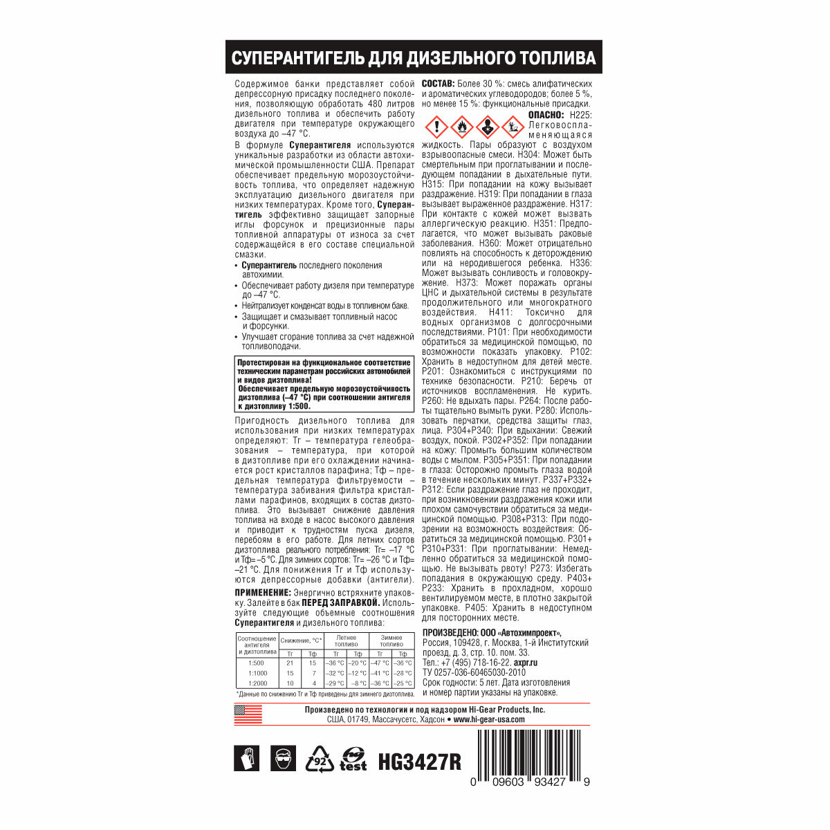 Суперантигель Для Дизтоплива Hi-Gear арт. HG3427R