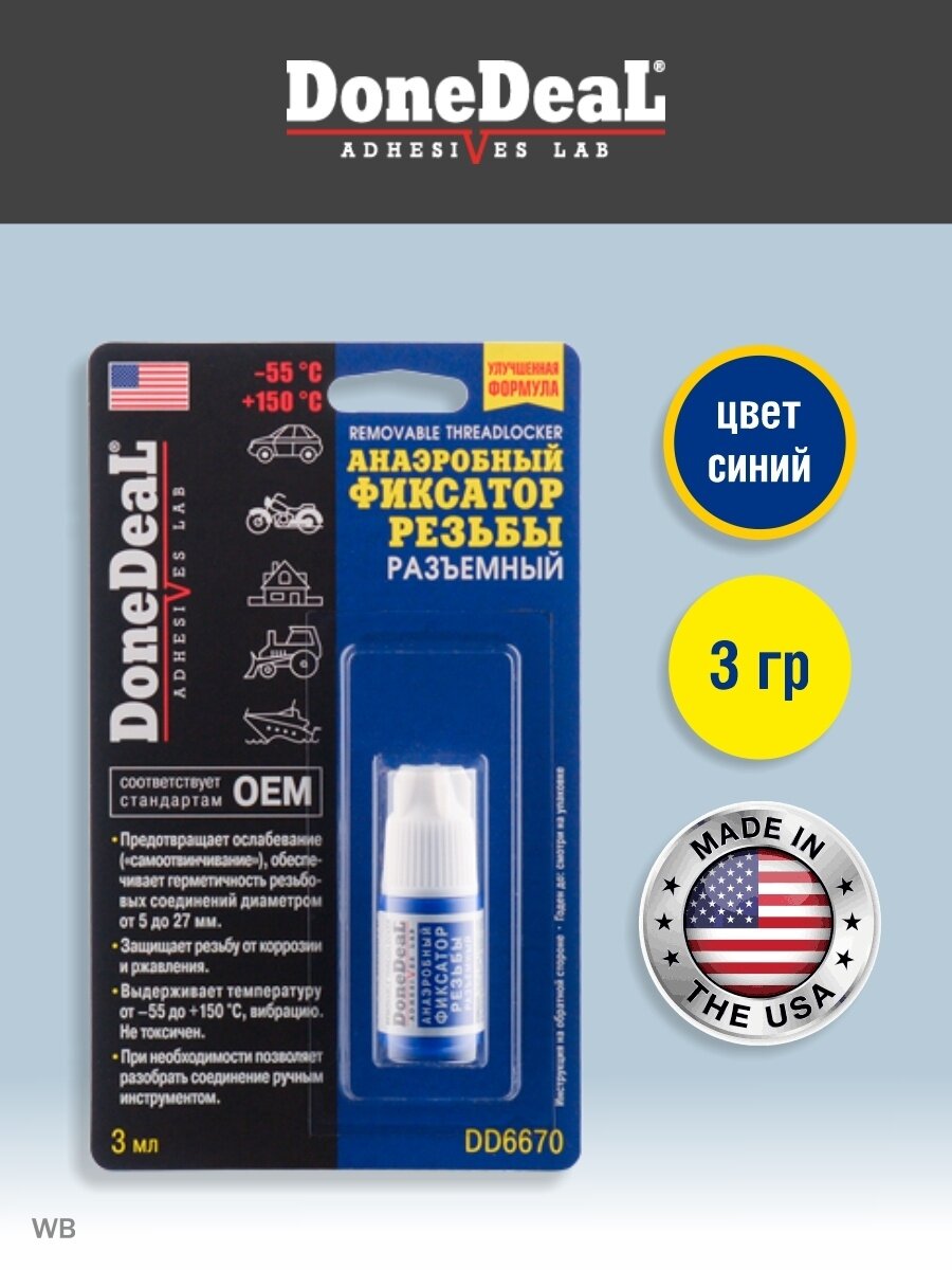 Dd6670_=Hg !3g Анаэробный Фиксатор Резьбы Разъемный. Герметезирует Резьбовые Соединения DoneDeal арт. DD6670