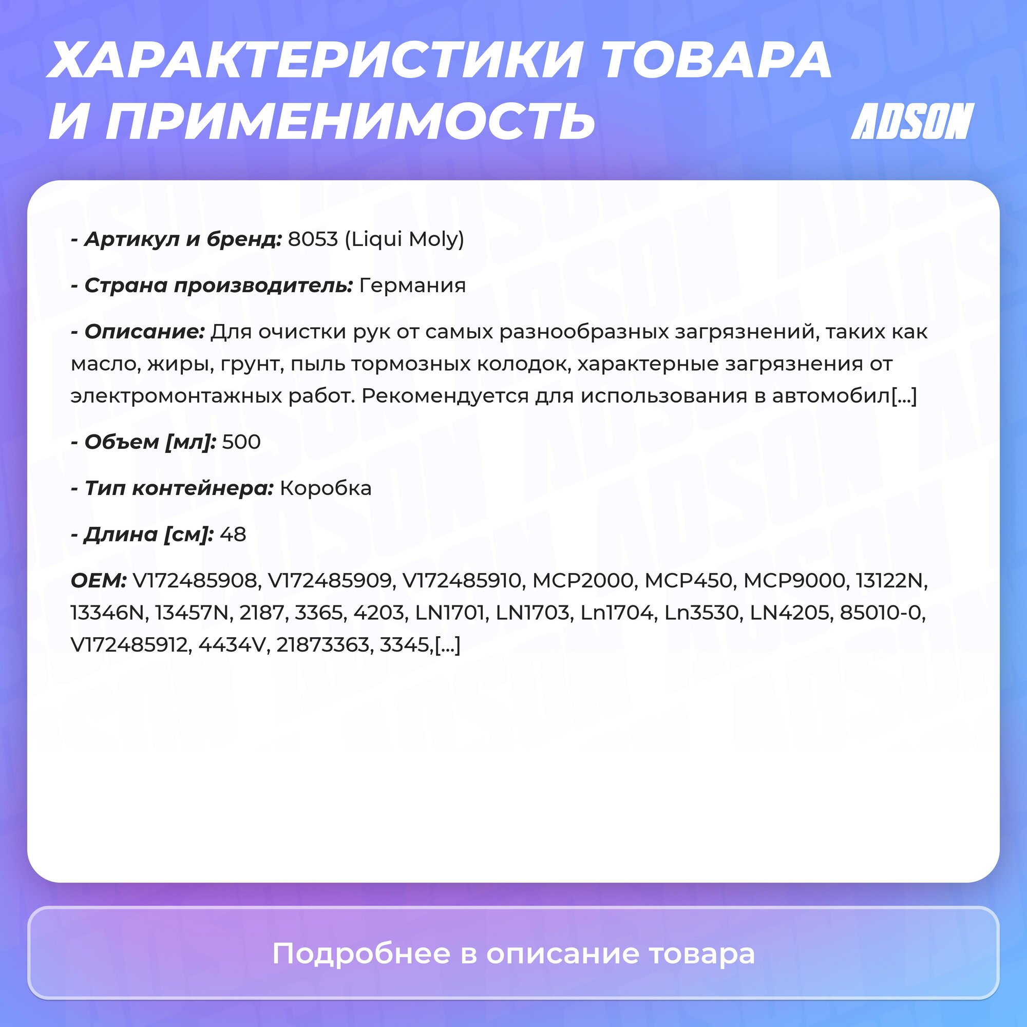 СохранитьLIQUI MOLY 3355 Очиститель для рук 500мл - Жидкая паста для очистки рук Flussige Hand-Wasch-Paste интересное: