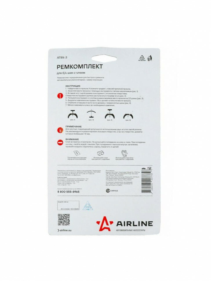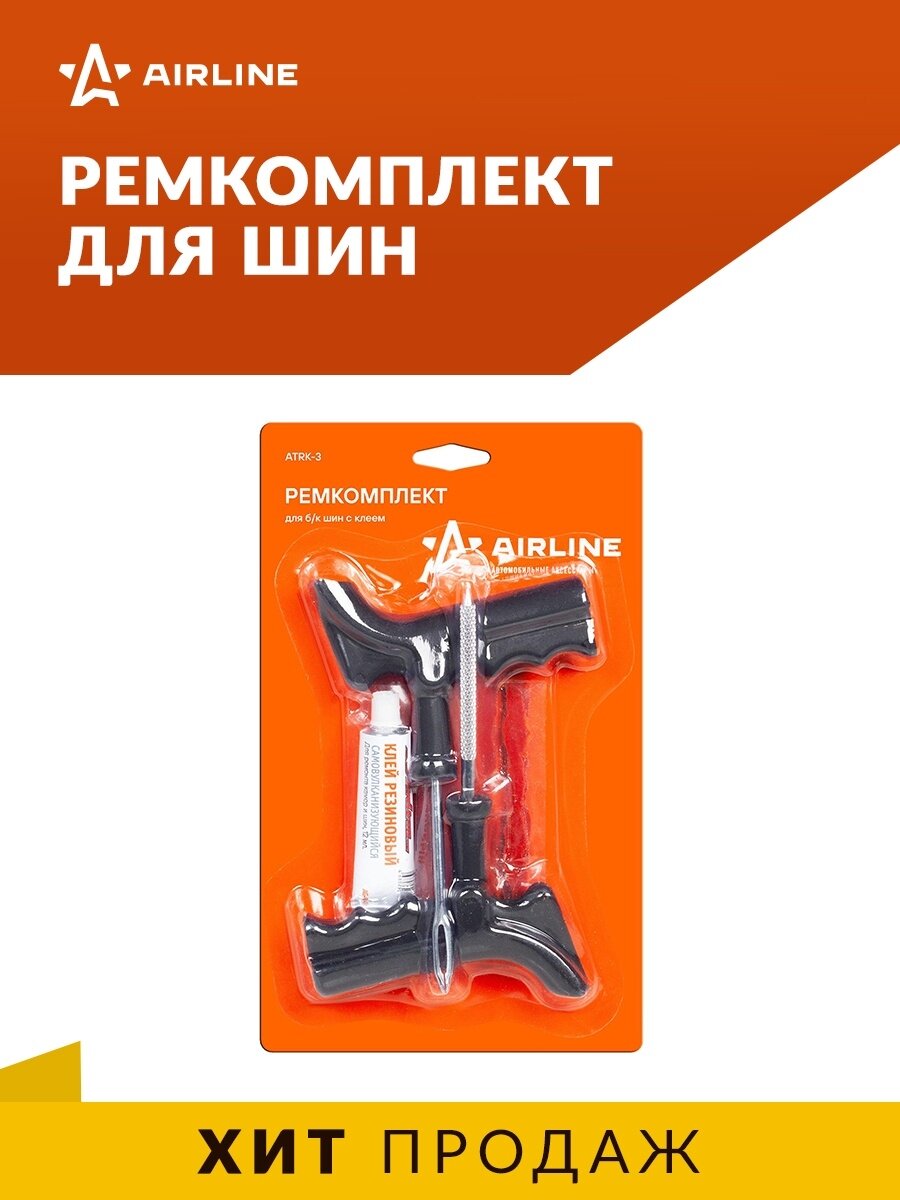 Ремкомплект для ремонта б/к шин с клеем-активатором AIRLINE, арт. ATRK-3