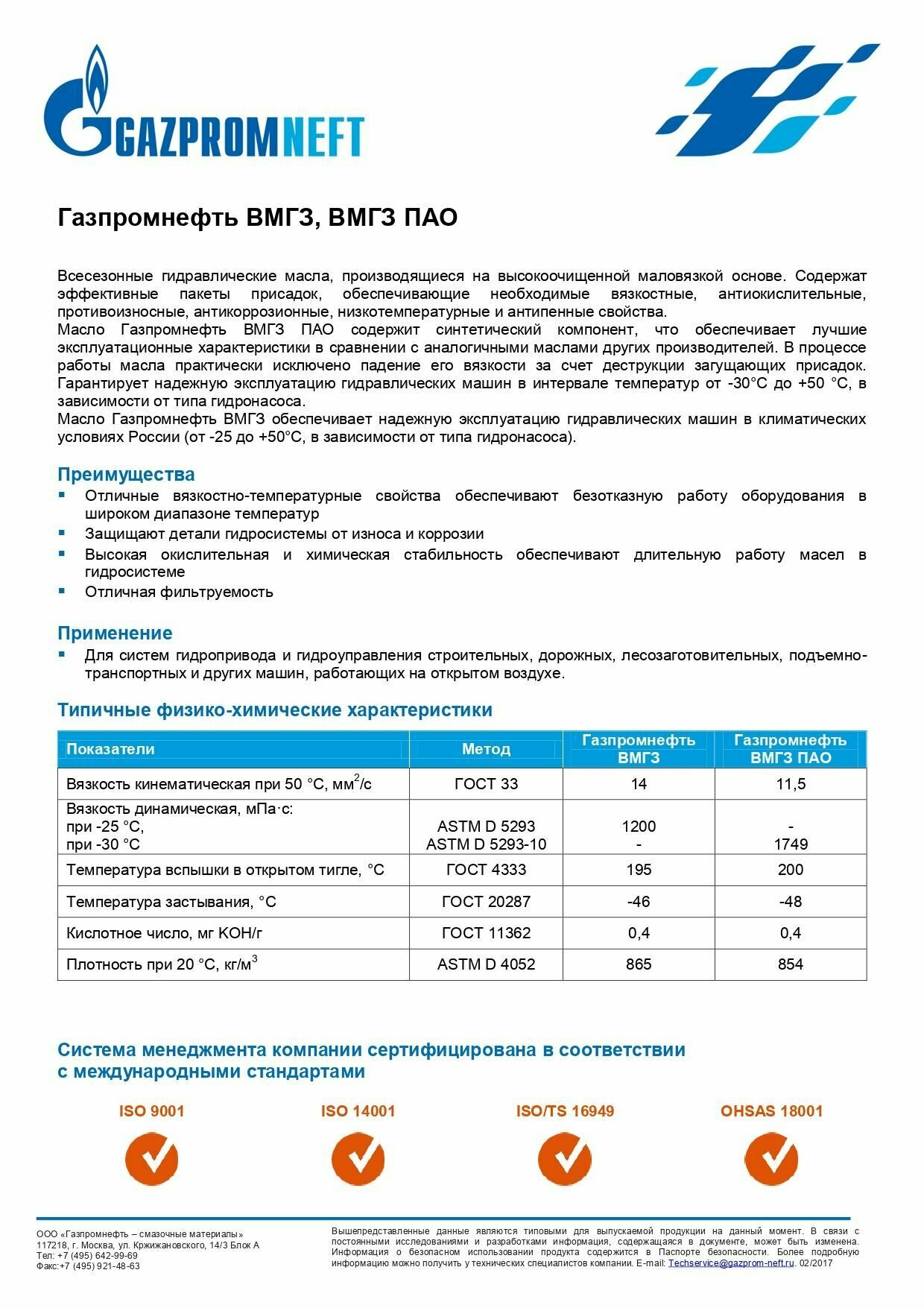 Масло Гидравлическое Вмгз GAZPROMNEFT 253340073