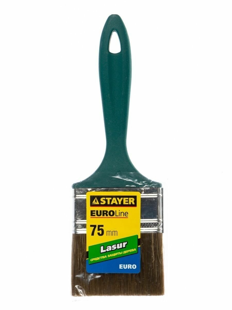 Кисть плоская STAYER "LASUR-EURO", смешанная (натуральная и искусственная) щетина, пластмассовая ручка, 75мм