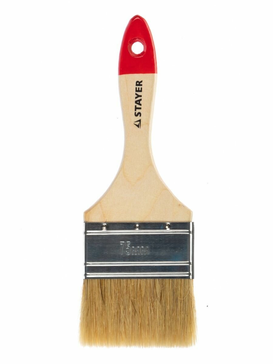 STAYER Universal 75 мм, 3 светлая натуральная щетина, деревянная ручка, Плоская кисть, STANDARD (0101-075)