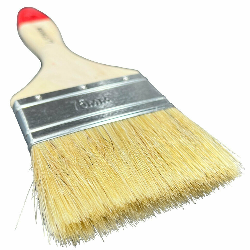 Плоская кисть STAYER Universal 75 мм 3 светлая натуральная щетина деревянная ручка (0101-075)