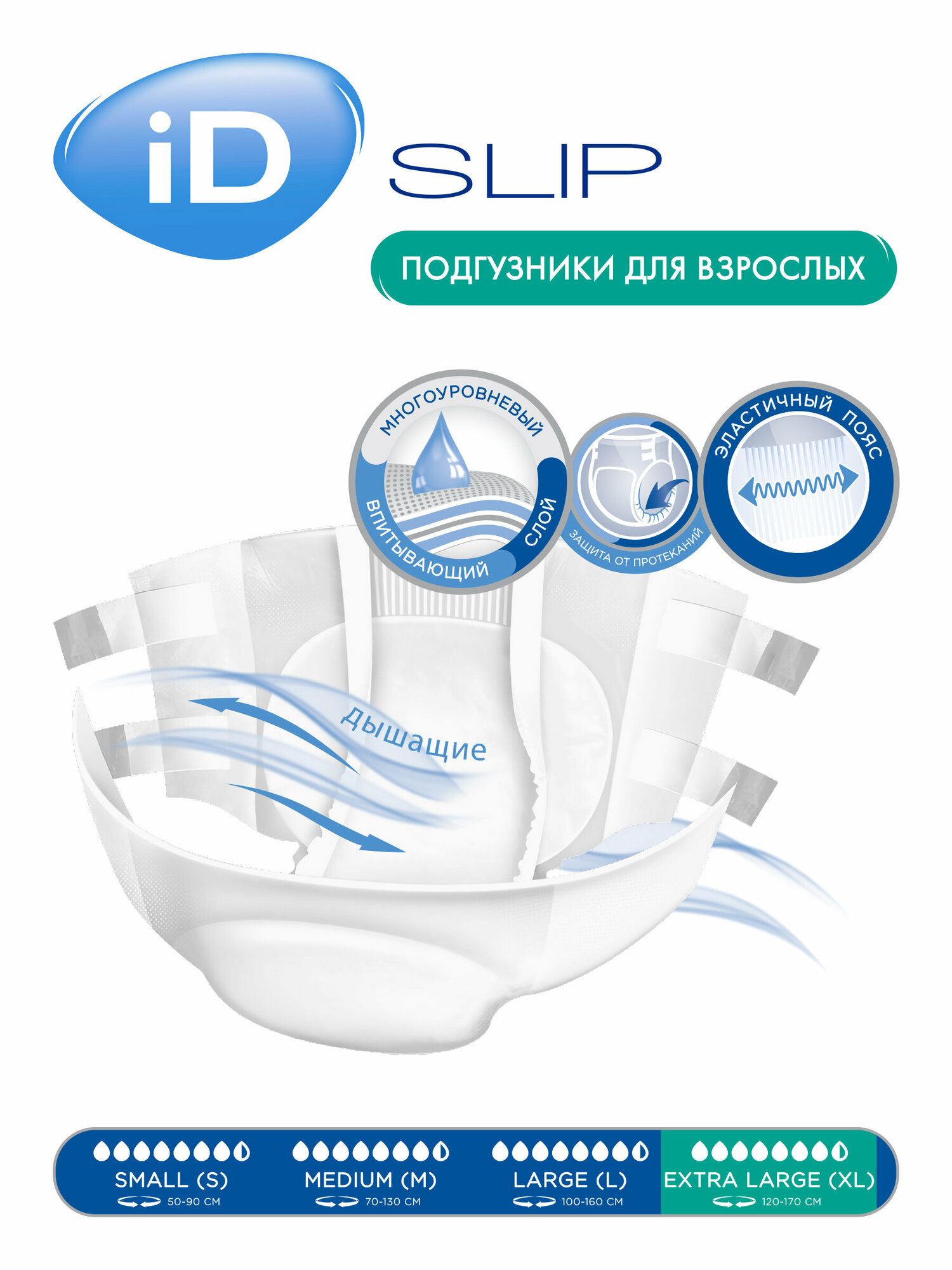 Подгузники для взрослых iD Slip Extra Large, объем талии 120-170 см, 14 шт.
