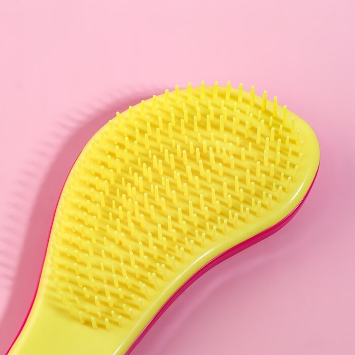 Расчёска массажная, 6 x 14.5 см, цвет розовый/жёлтый