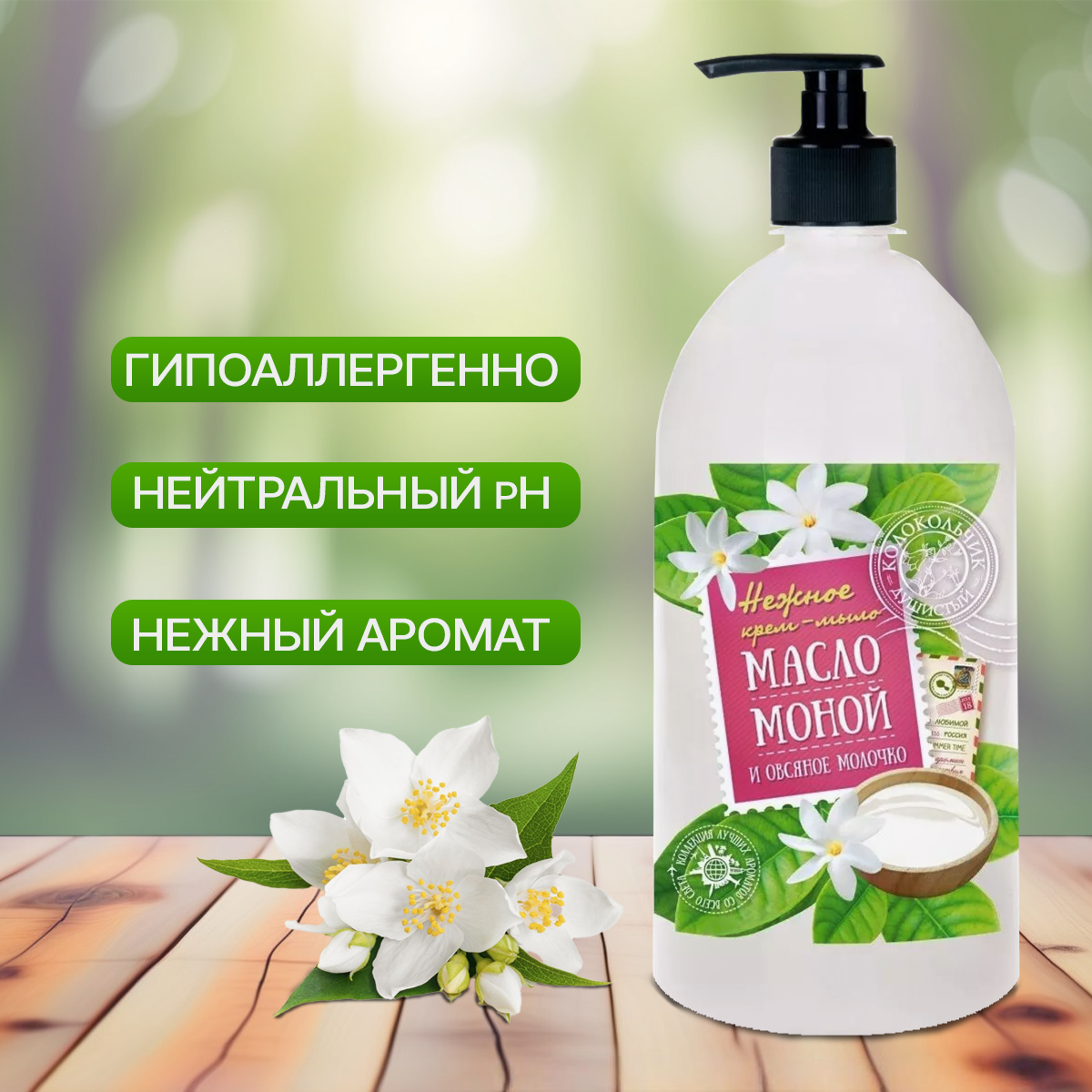 Мыло-крем жидкое Душистый Колокольчик "Масло моной с овсяным молочком", 1000мл, флакон с дозатором, 1шт. (85319)
