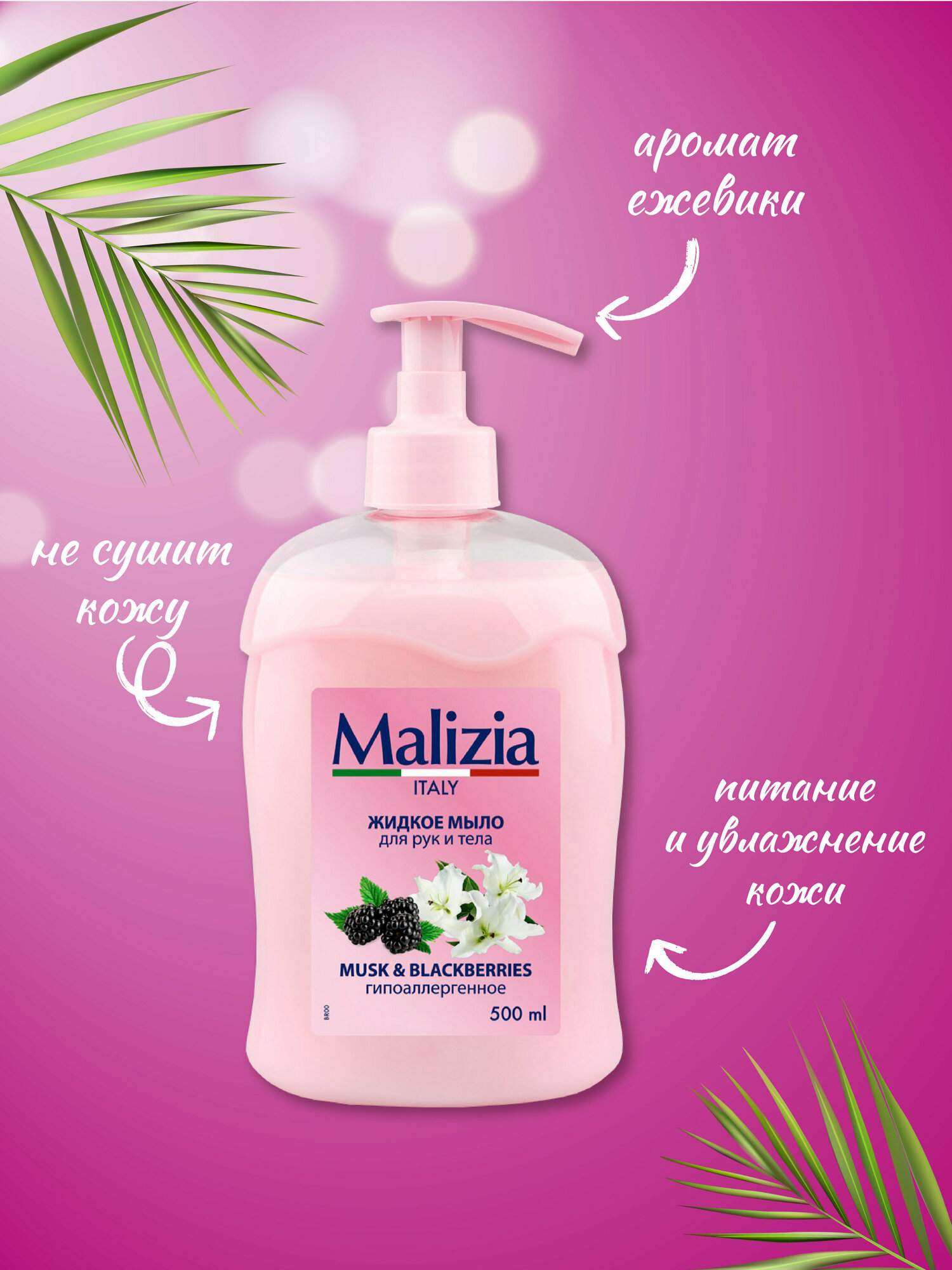 MALIZIA Мыло с дозатором MUSK BLACKBERRY 500мл с ароматом мускуса и ежевики