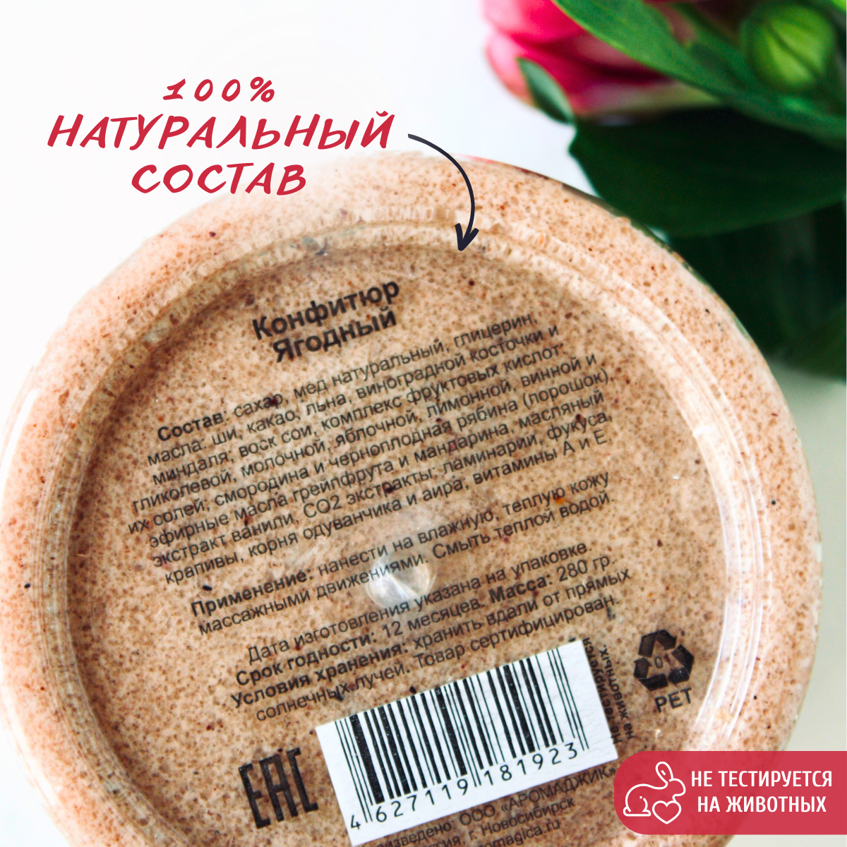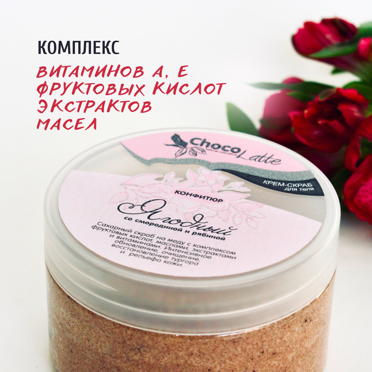 Крем-скраб д/тела конфитюр ягодный рябина,смородина (сахарн.мед,фрукт.к-ты,масла)ТМChocoLatte,280гр