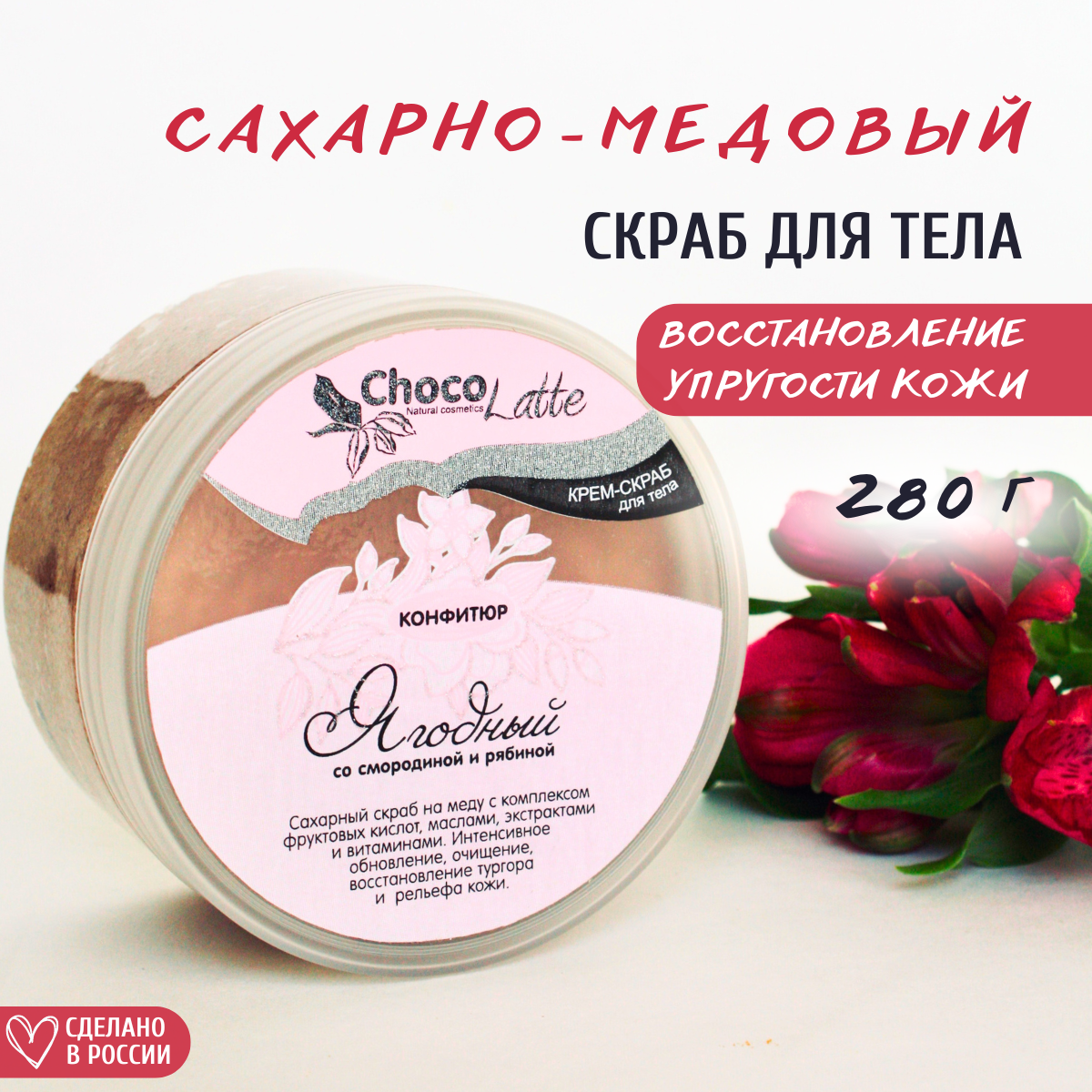 СохранитьChocoLatte Крем-скраб Сахарный на меду для тела конфитюр ягодный рябина, смородина, 280 гр интересное:
