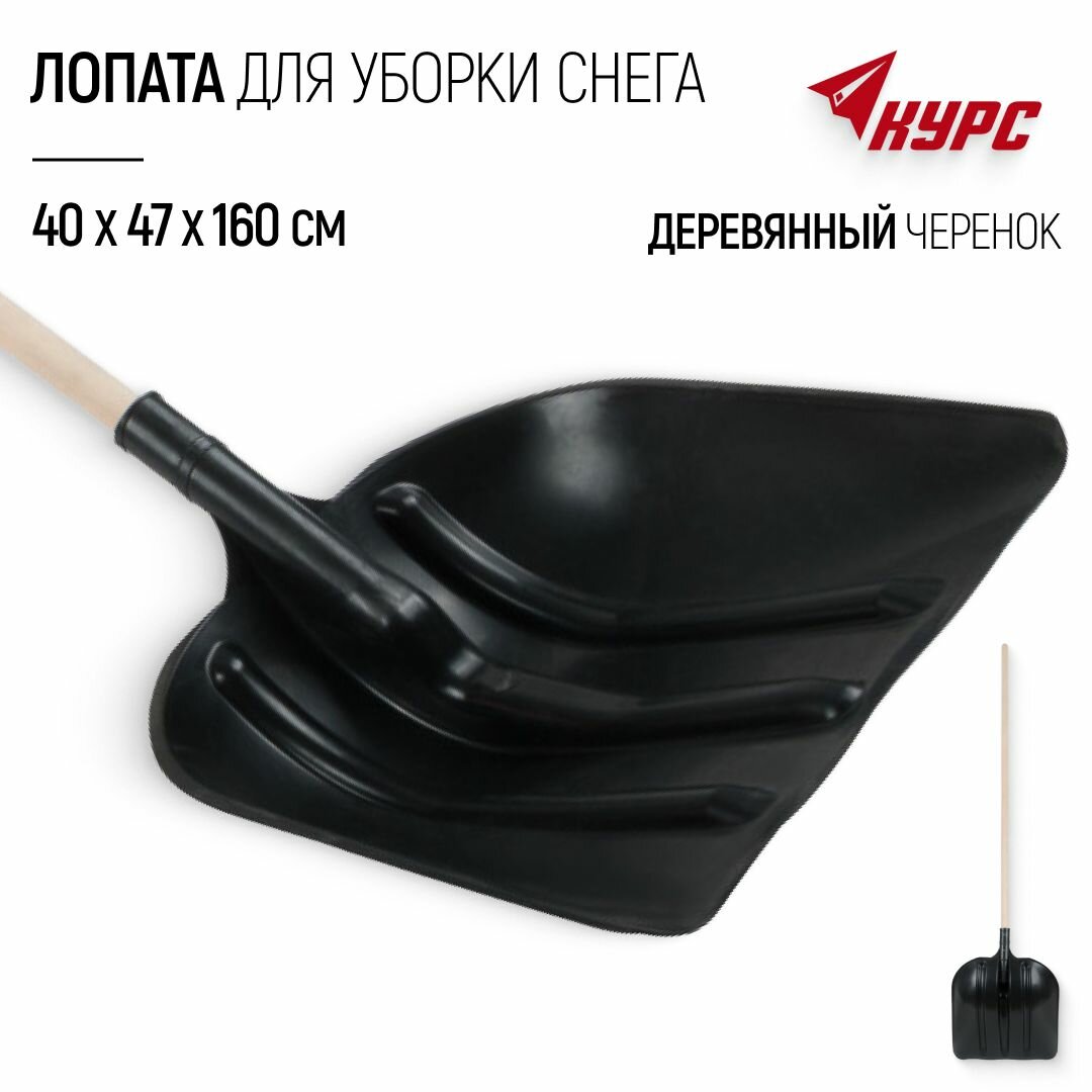 РОС Лопата для уборки снега пластиковая, деревянный черенок 400х470х1600 мм [68111] .