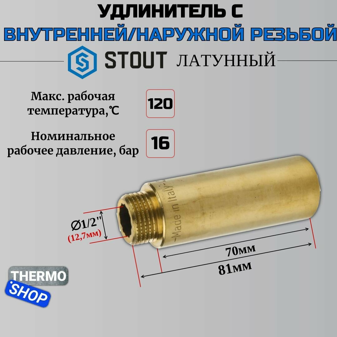 Удлинитель внутренняя / наружная резьба Stout 1/2* x 70