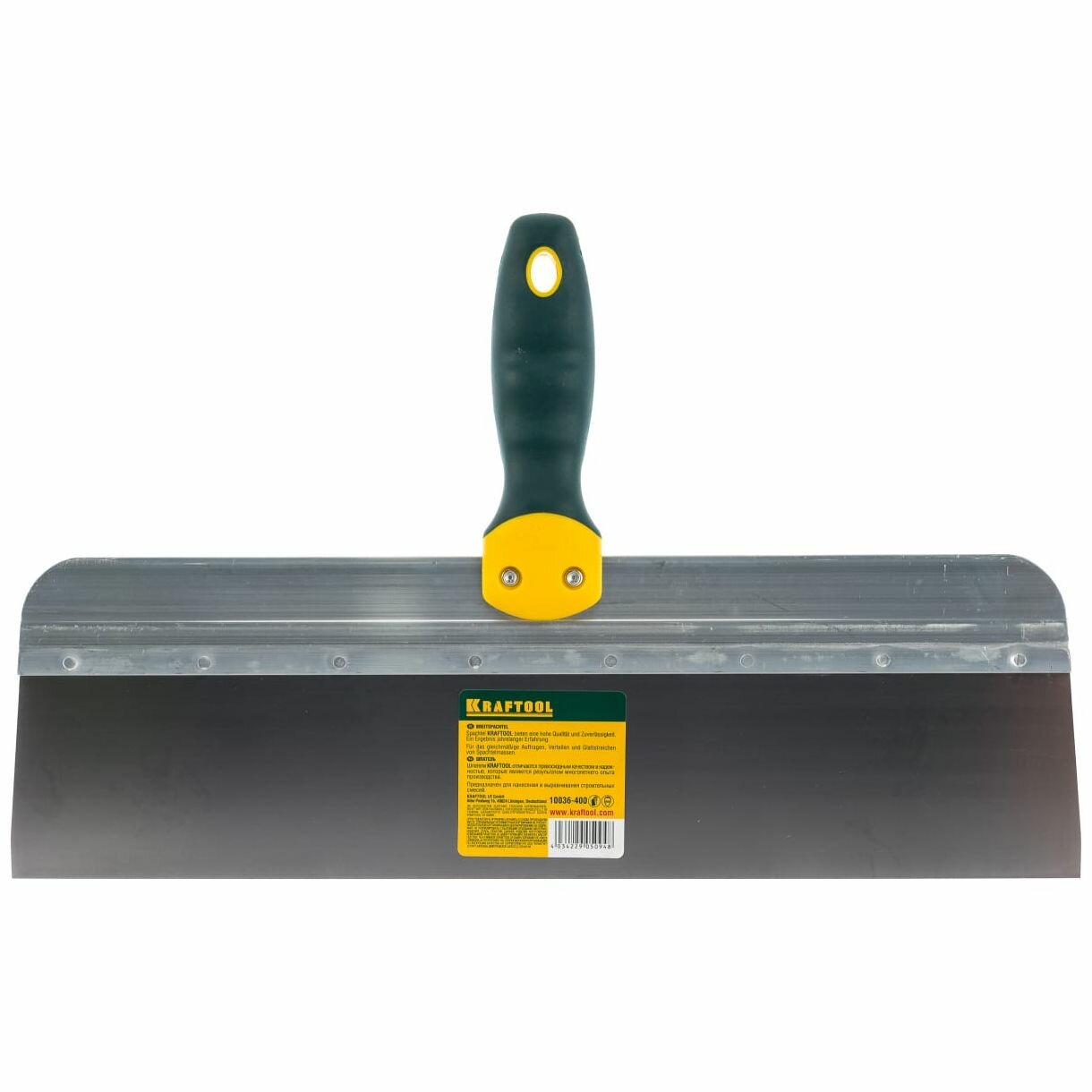 Купить KRAFTOOL 400 мм, широкое полотно алюминиевая направляющая двухкомпонентная ручка, нержавеющий, Фасадный шпатель (10036-400)