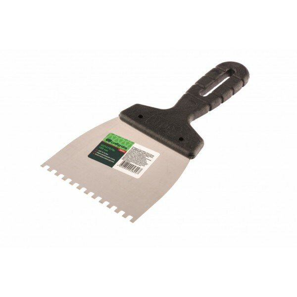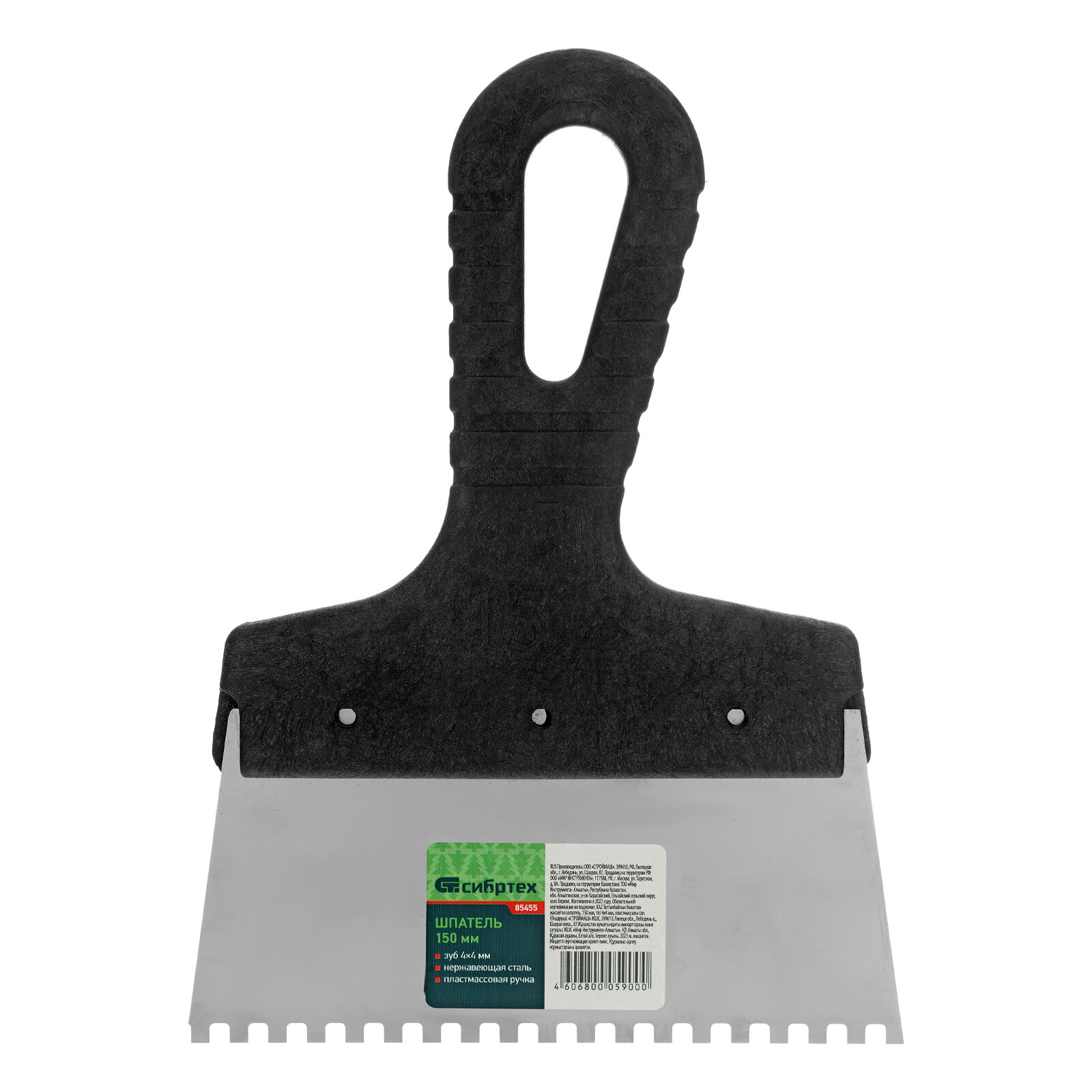 Шпатель из нержавеющей стали, 150 мм, зуб 4 х 4 мм, пластмассовая ручка Сибртех (арт. 85455)