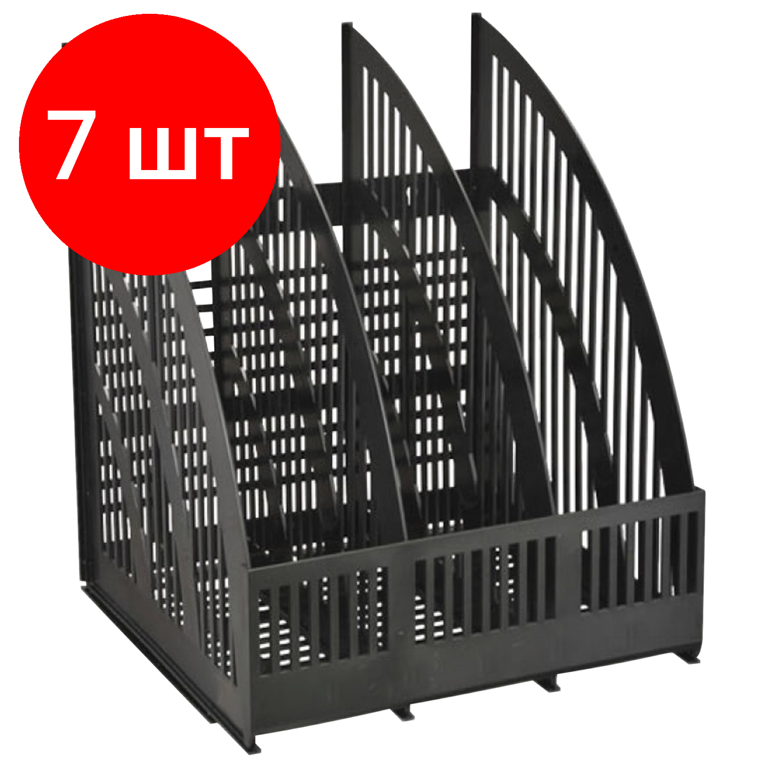Купить Комплект 7 шт, Лоток вертикальный для бумаг СТАММ "Line" (253х250х290 мм), 3 отделения, сетчатый, сборный, черный, ЛТ454