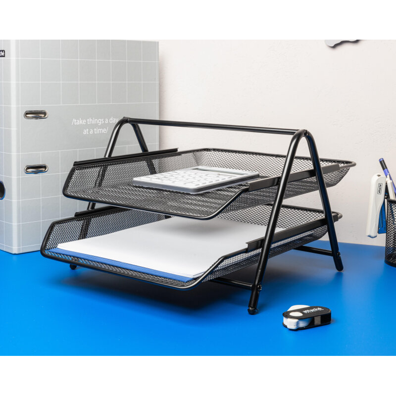 Лоток для бумаг Attache металл, сетка, 356*278*53 мм, черный, 2 уровня (688770)