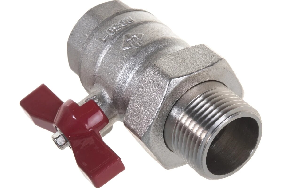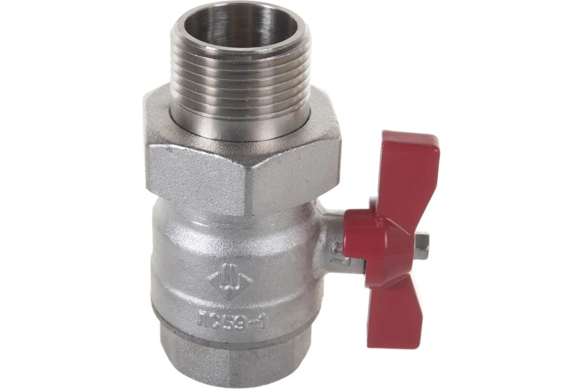 Кран ЗУБР шаровой 1" полнопроходной с накидной гайкой "мама-папа", бабочка, никелированная латунь