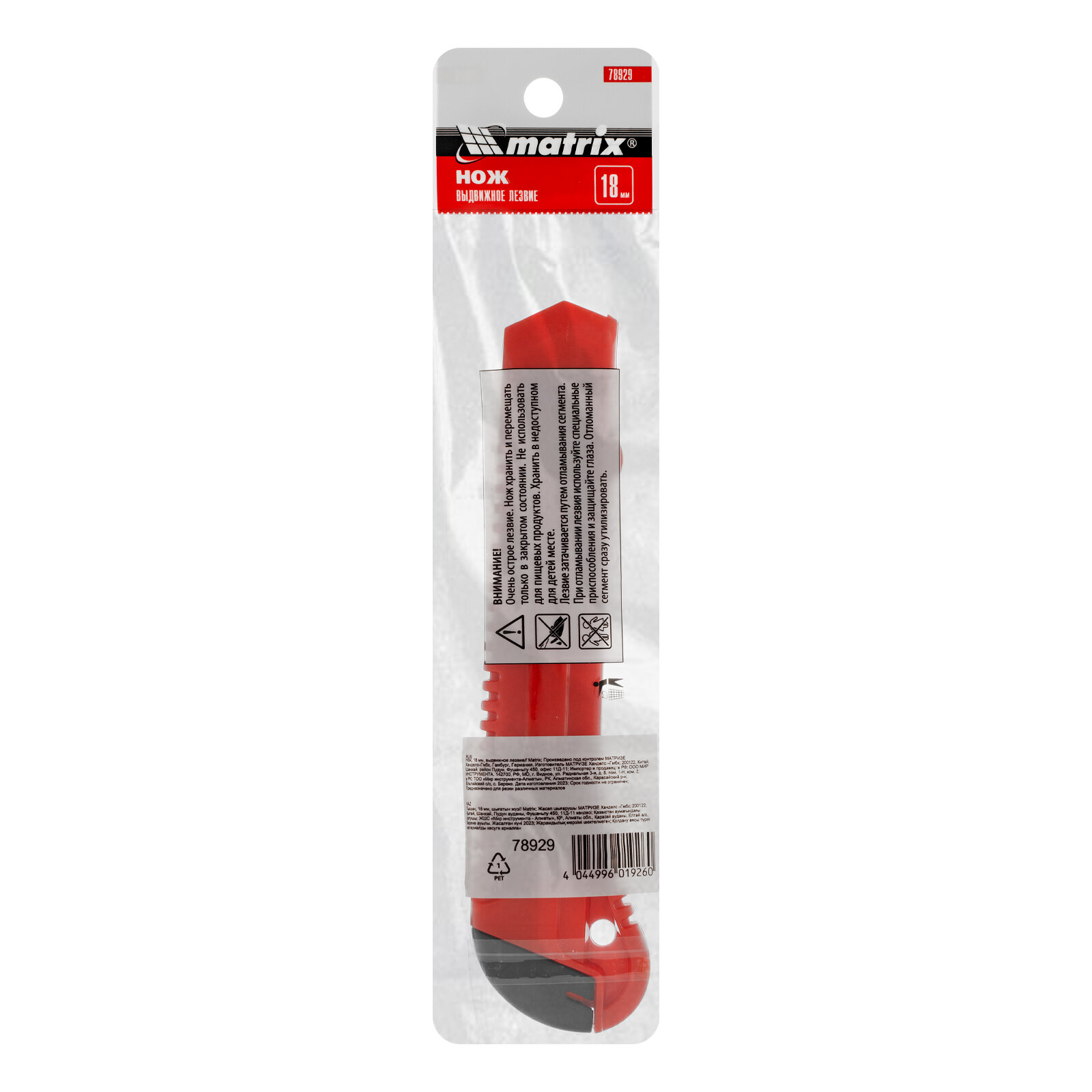 Нож, 18 мм, выдвижное лезвие, MATRIX 78929 (1 шт.)
