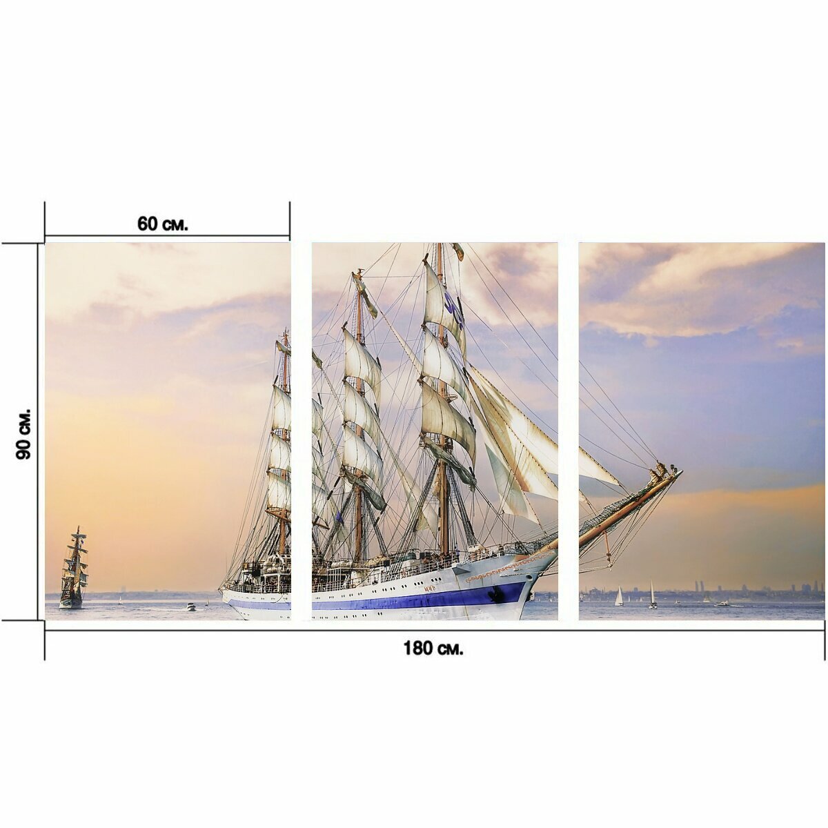 Модульный постер "Лодка, парусный спорт, море" 180 x 90 см. для интерьера интересное: