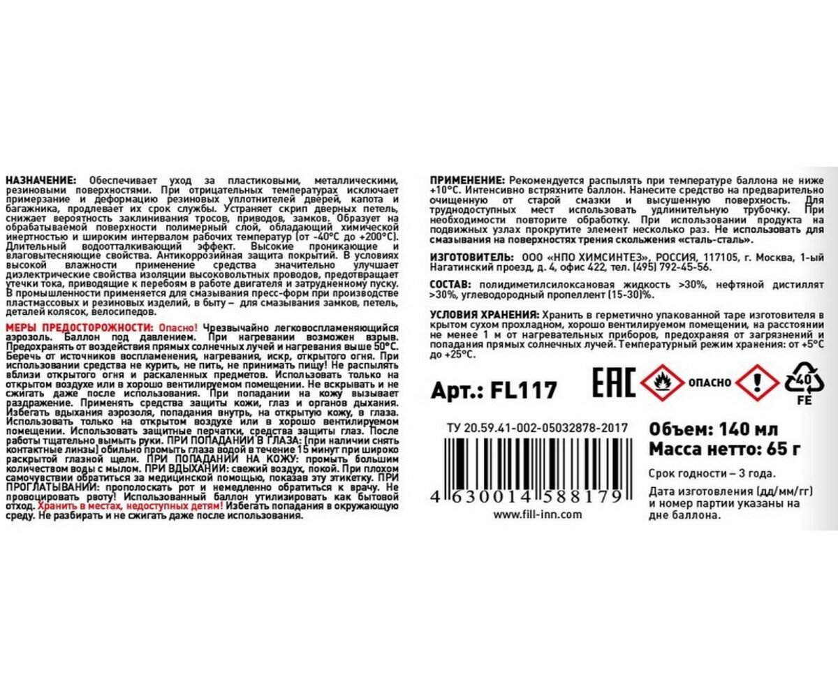 СохранитьСмазка силиконовая 140мл аэрозоль FL117 FILL INN интересное: