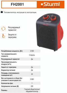 FH2001 Тепловентилятор Sturm 2000Вт 3 реж. рег. темостат. защита от перегрева