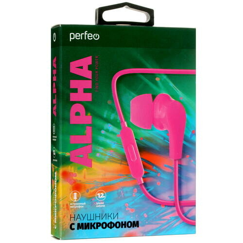 Perfeo наушники внутриканальные c микрофоном «ALPHA» розовые (PF_A4937)