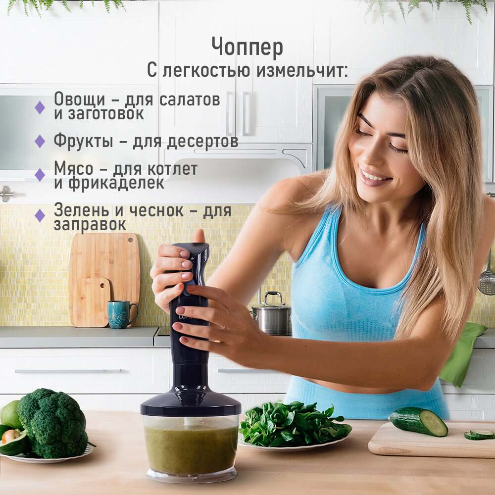 Погружной блендер 3 в 1, 2 скорости, мощность 800 Вт, небесно-голубой