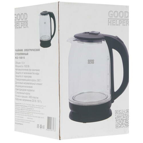 Чайник электрический GOODHELPER KG-18B10, стекло, 1.8 л, 1500 Вт, чёрный