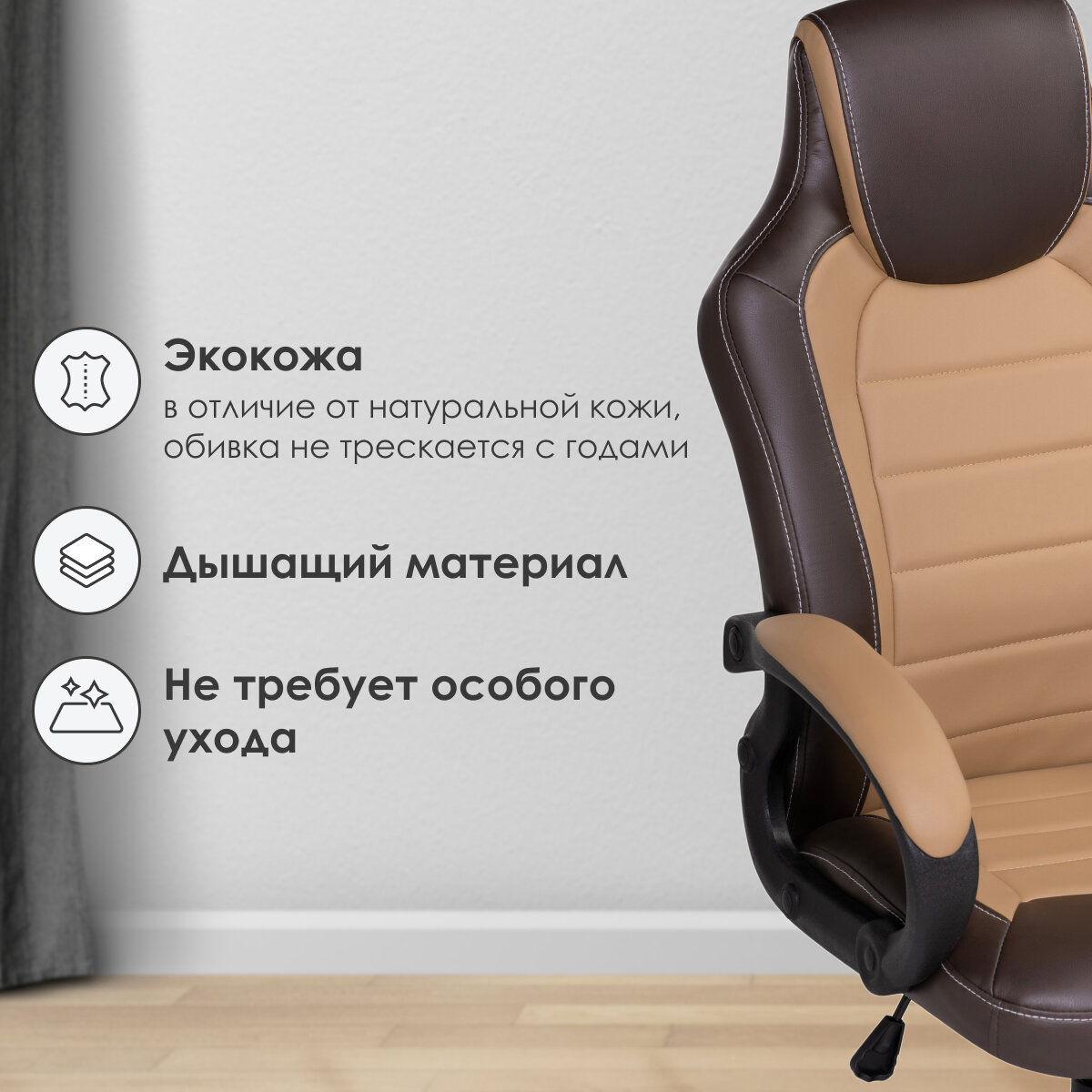 Кресло компьютерное Kadis, Цвет обивки: бежевый, коричневый, Цвет корпуса: черный