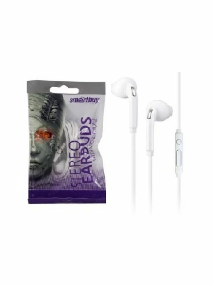 Наушники-вкладыши с микрофоном SmartBuy S6, 1.1м, белый