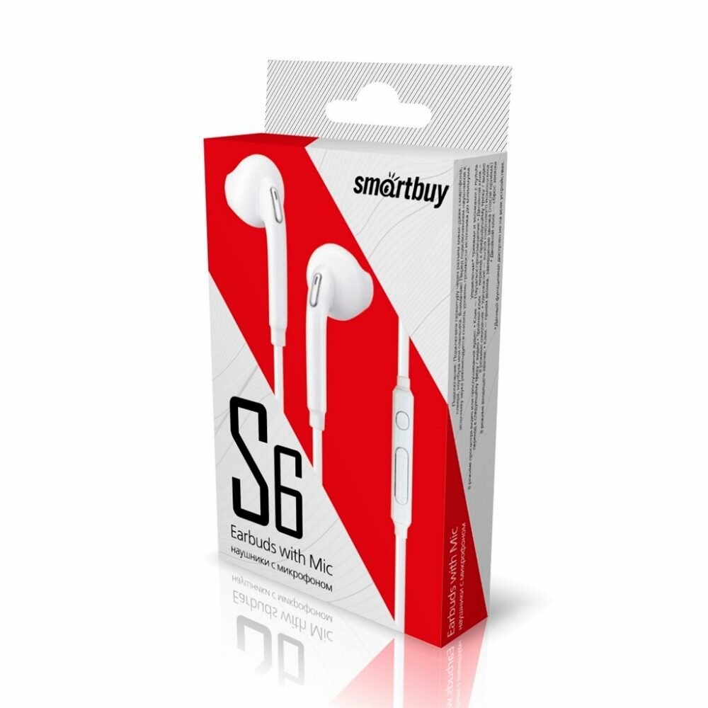 Внутриканальная гарнитура Smartbuy S6, белая, коробка (SBH-202K) /60