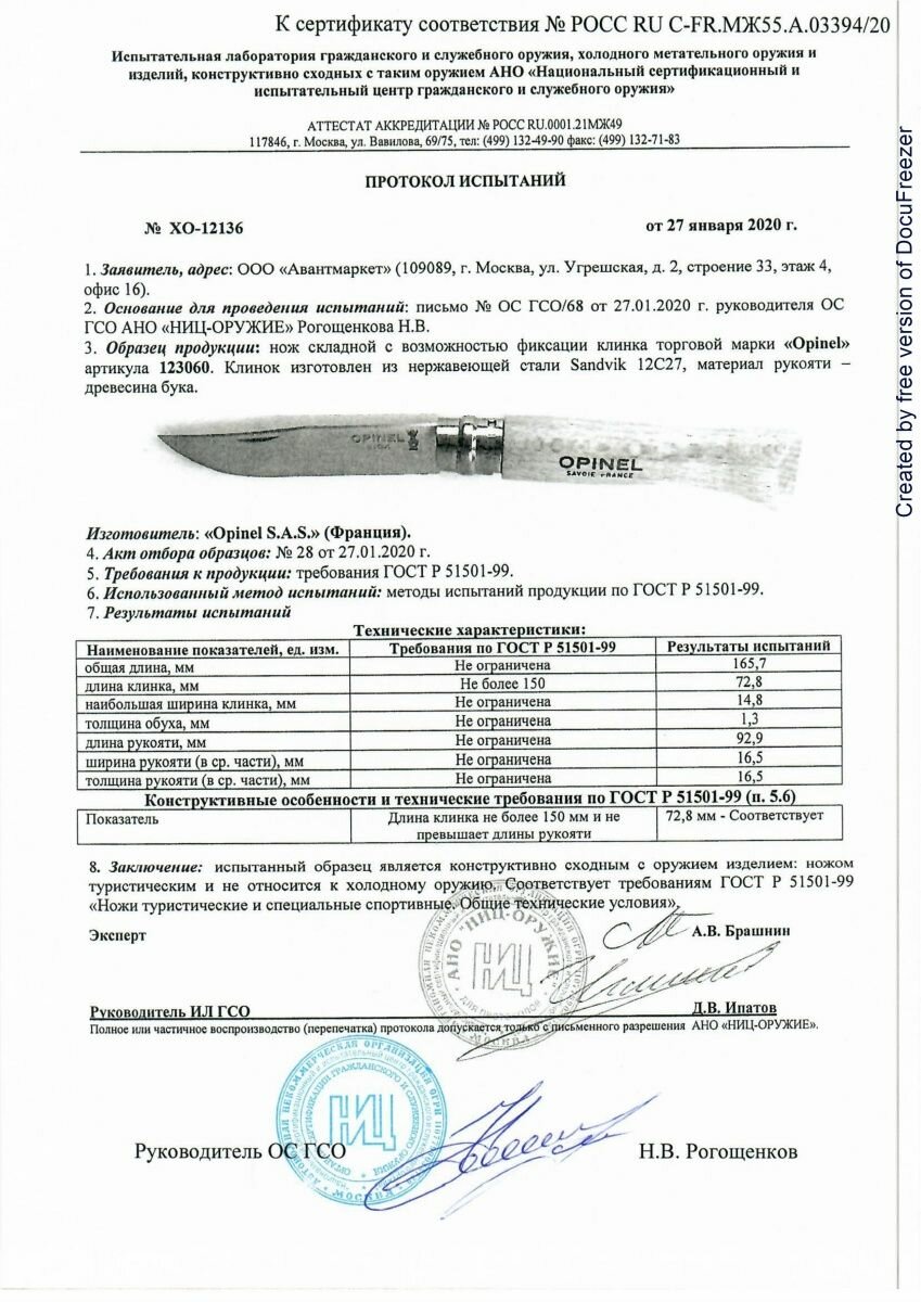 Нож Opinel серии Tradition №06, клинок 7см, нерж.сталь, рукоять-бук