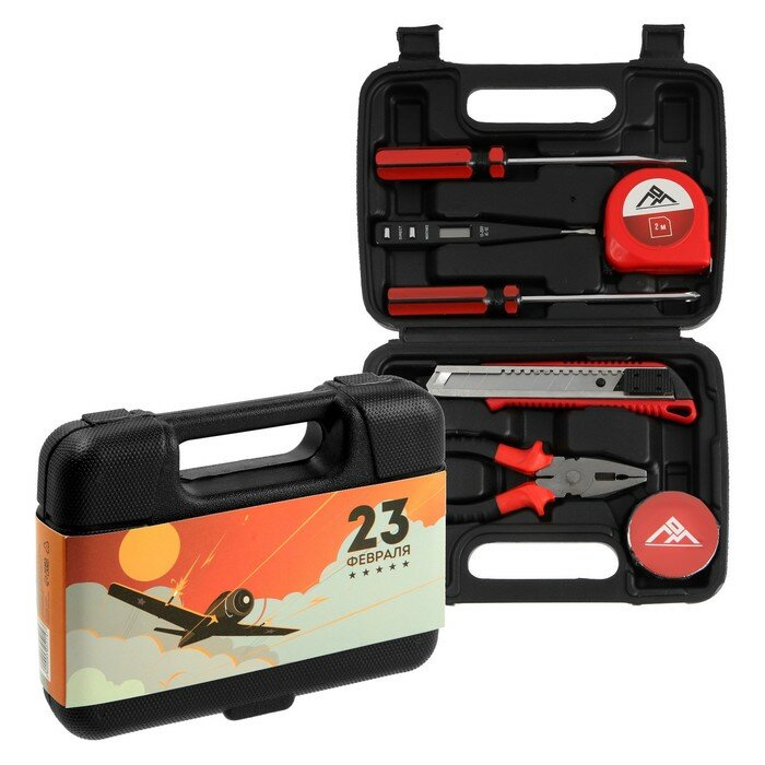 Купить Набор инструментов в кейсе ЛОМ "23 февраля", в подарочной упаковке, 7 предметов